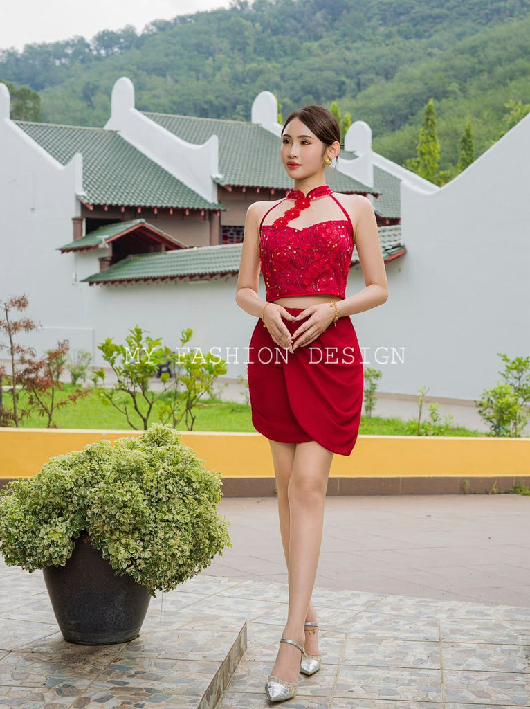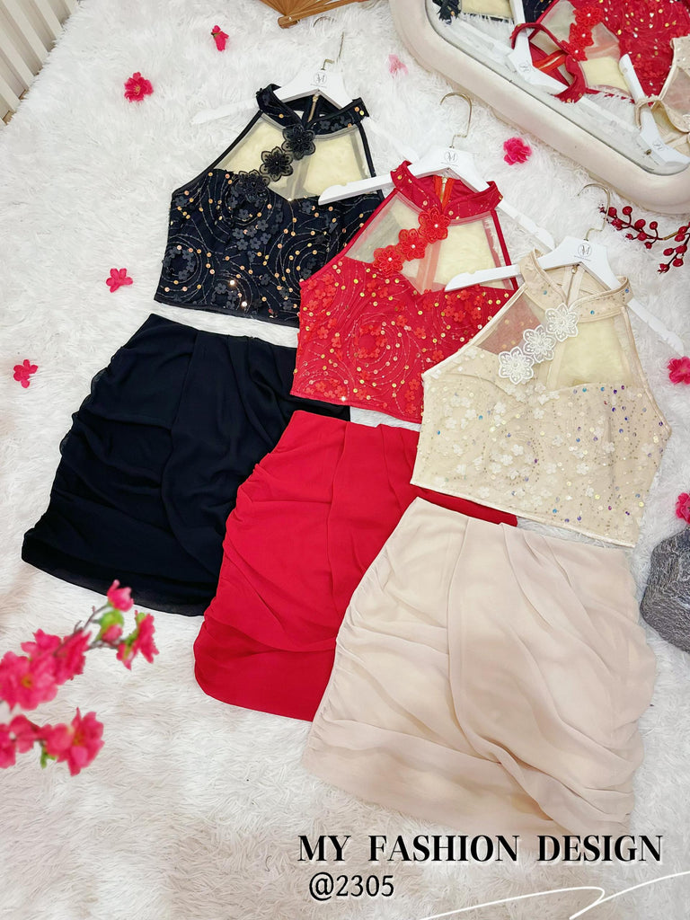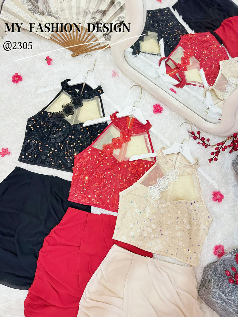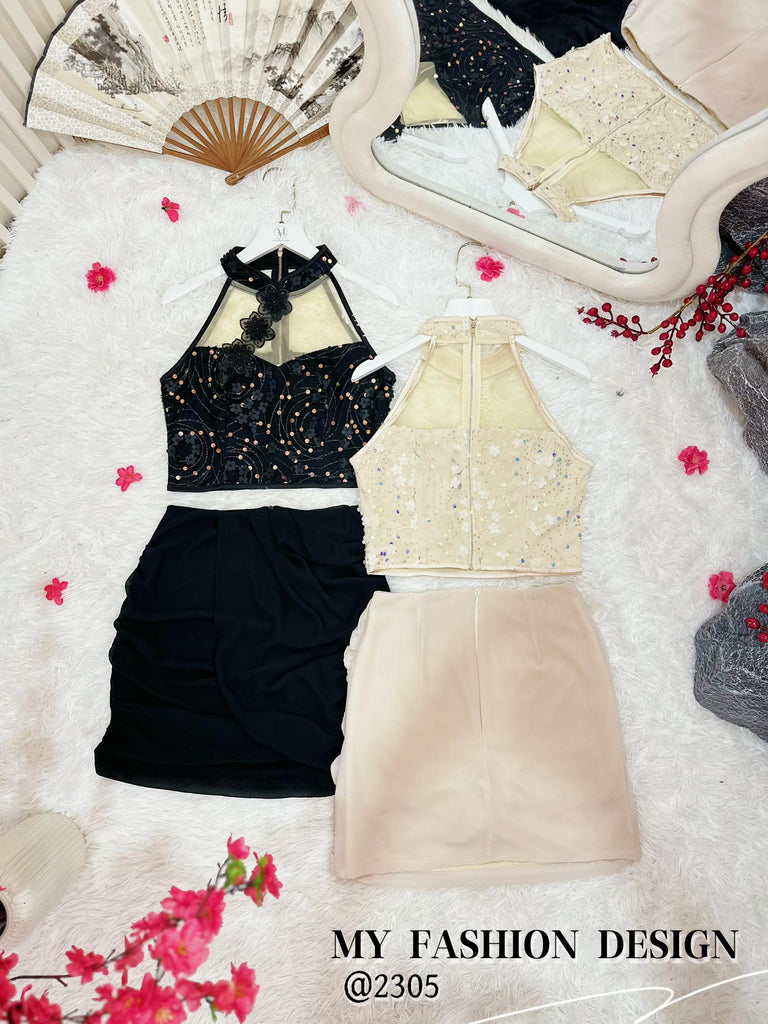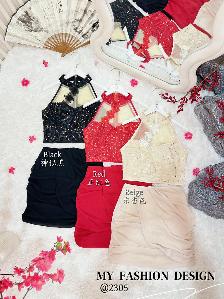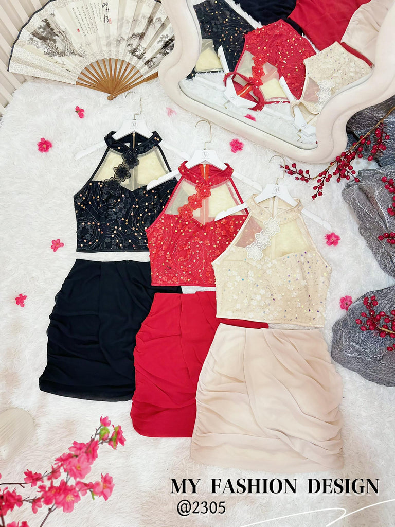 🏮MFD独家爆款🏮高品质气质款亮片旗袍套装 上衣 ➕ 裤裙 RM159 Only🔥(2-O3)