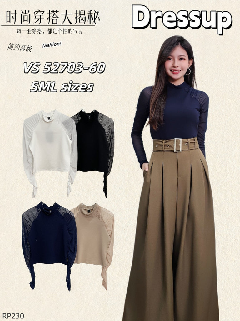 (补现货)52703 拼接网纱时装上衣 RM30 Only🌸(原价RM60)