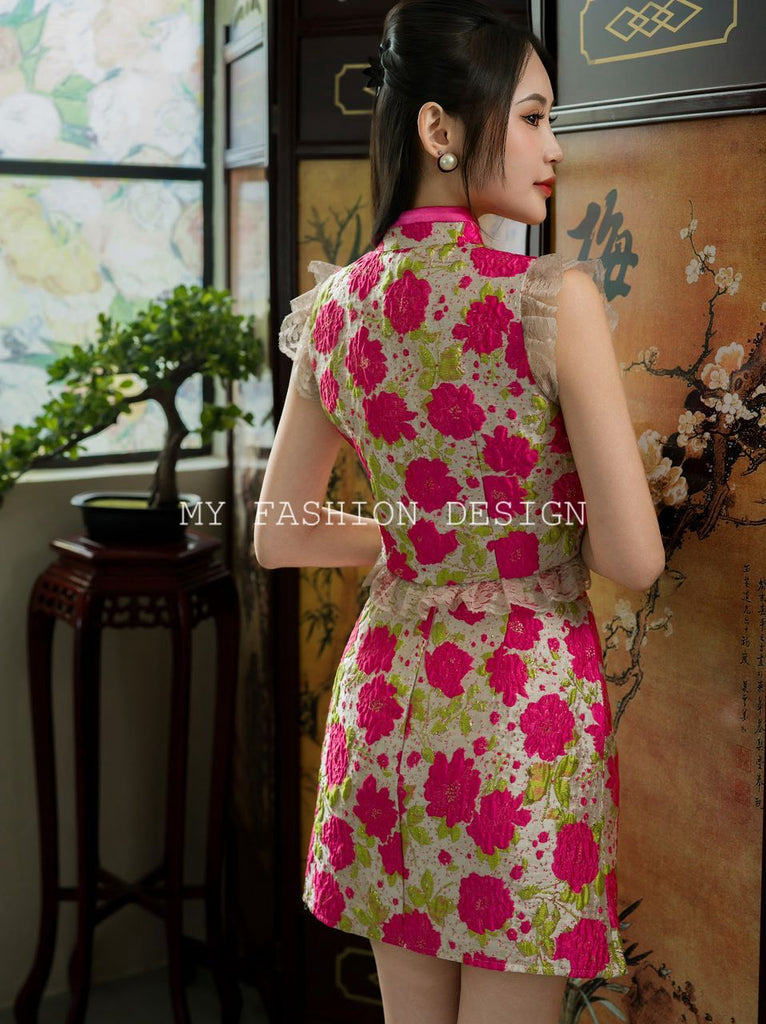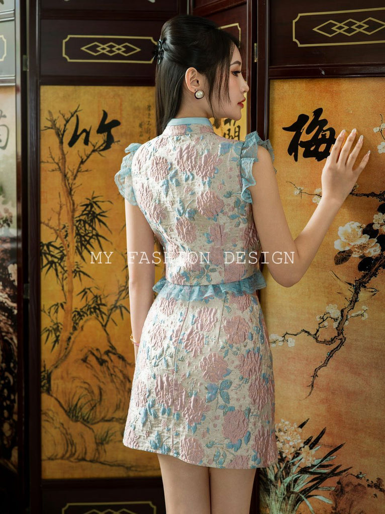 ⚠️预定款⚠️🔥独家爆款🔥高品质气质提花款旗袍套装 上衣 ➕ 裤裙 RM129 Only🌸 (原价 RM149 )